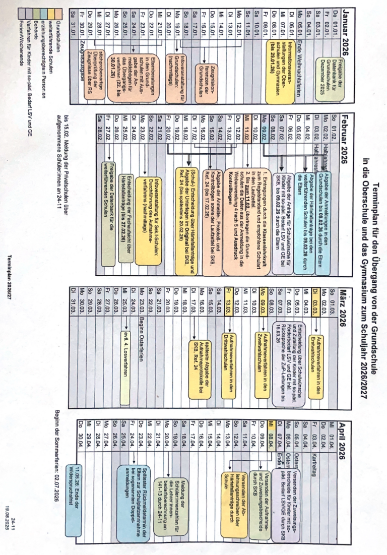 Terminplan für den Übergang von der Grundschule in die weiterführenden Schulen